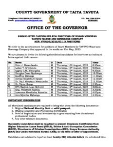 TAVEVO Water and Sewerage Company Ltd > Media Center > News > PUBLIC NOTICE:SHORTLISTED CANDIDATES FOR POSITIONS OF BOARD MEMBERS TAVEVO WATER AND SEWERAGE COMPANY REF: TVO/05/2023/001 (3 POSITIONS) > Notice to Board member candidates